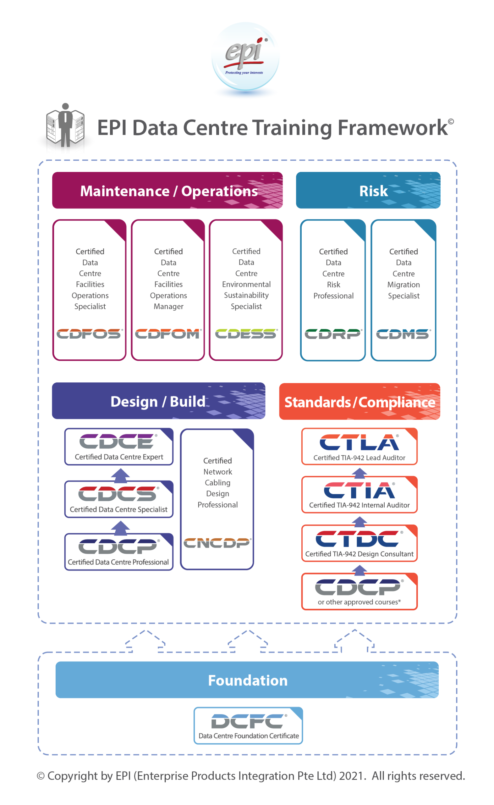 EPI (Enterprise Products and Innovation) is the trusted global certification body for data center facilities, operations, and industry professionals. With a track record spanning over 37 years, EPI is a European-origin company with a worldwide presence across 60 countries and 130 cities, operating through direct operations and an extensive partner network. EPI has firmly established itself as the world leader in data center certification, holding the distinction of having certified the highest number of data center sites and professionals globally.